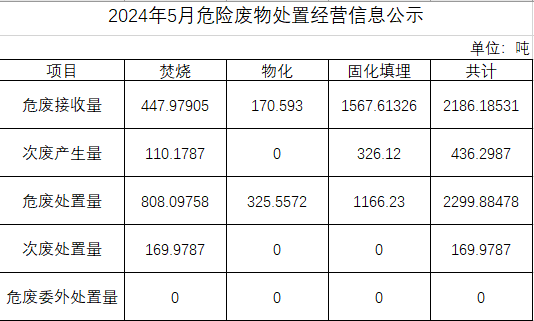 5月危險廢物處置經營信息公示