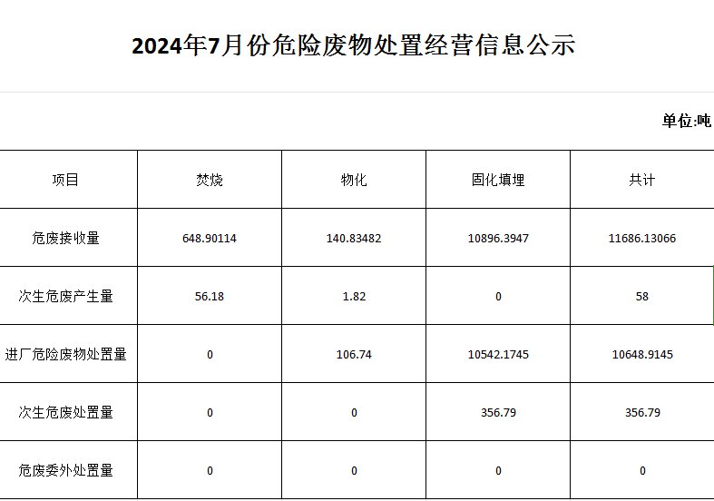 7月危險廢物處置經營信息公示